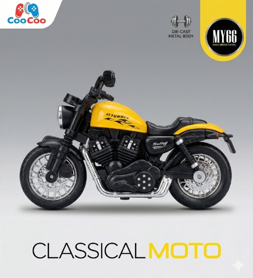 The Classical Moto Die-Cast Bike Toy (MY66 High-Speed Model) is a beautifully designed miniature motorcycle that combines durability with realistic styling. Made from high-quality die-cast metal, this toy bike offers a premium feel and long-lasting performance.